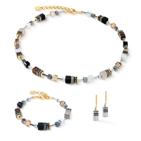 A GeoCUBE precious Motion gold fülbevaló a kollekció nyugodt, természetes színjátékát idézik. A csiszolt achát, a csillogó kristályok és a fénylő fémes hematit összeolvadva tiszta, stílusos dizájnt alkotnak. Az arany színű rozsdamentes acél meleg kontrasztot biztosít – diszkrét, modern és tökéletesen illeszkedik a nyaklánchoz és a karkötőhöz.