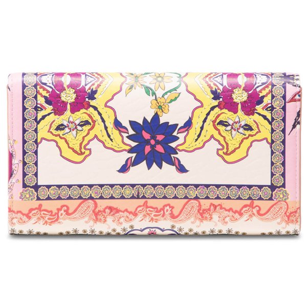 A Desigual Pink boho carmina pénzátrcája csodásan ötvözi a márkától már megszokott bohókás, mozgalmas mintákat a tavasz trend színeivel: az univerzális bézs, törtfehér és púderszínek került előtérbe. A virágminták mellett az eklektikus minták is megjelennek rajta. Levehető csuklópántal látták el, így könnyedén magunkkal vihetjük. 6 kártyának van kialakított hely benne.