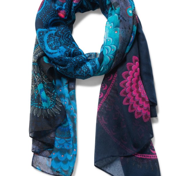 A Desigual Foul Pliss női kendő rózsaszín-kék alapszíneivel és magával ragadó mintáival egy szupernőies darab. AAz ultrakönnyű, lélegző, rugalmas anyag magas fokú komfortérzetet nyújt akár egy hűvösebb estén is.