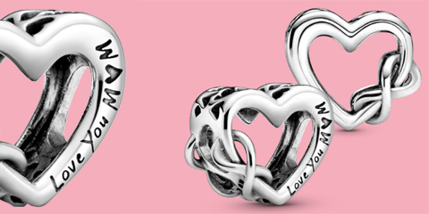 A Pandora anyák napi függő charmjai a végtelen szeretet büszke allegorikus ünnepei, a vidám MOM feliratos charm a kisgyerek első szavait idézik, a kétoldalt különböző megjelenéssel készült charmok pedig a szeretetre fókuszálnak.