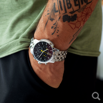 A Tissot PRC 200 fekete számlapos chronograph férfi karórája a fiatalabb, középkorú technikai sportok iránt is érdeklődő kronográf rajongókat célozza. Az óra megjelenése határozott, a stopper funkciók jól elkülönülten olvashatóak le a számlapról, a sárga stopper mutató harmonikusan ellenpontozza a számlap monochrom hangulatát. A karóra 200 méter vízállósággal rendelkezik, tehát komolyabb búvárkodásra mellet alkalmas fürdéshez, strandoláshoz, vizes sportokhoz is.