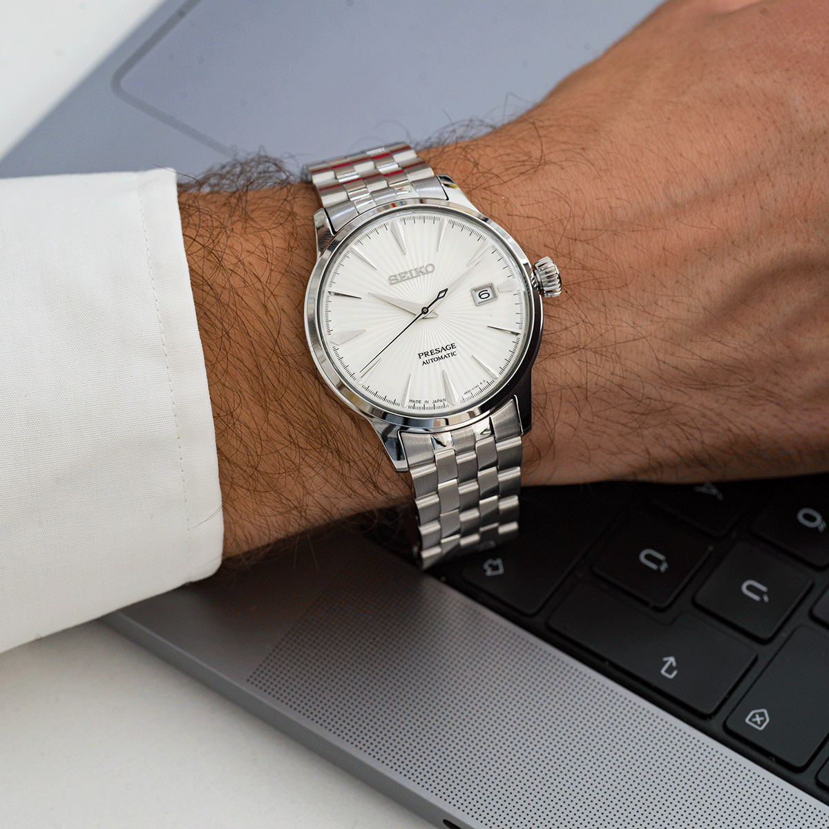 A Seiko Presage Cocktail Time órák fémszíjas változata azoknak ideális, akik egy sokoldalúbb, mindennapi viseletre is alkalmas órát keresnek. A fémszíj strapabírósága miatt aktívabb életmódhoz, üzleti találkozókhoz és kevésbé formális eseményekhez is remek választás. Jól illik az üzleti öltözethez, mint például az ing és szövetnadrág kombinációja, de akár egy sportosabb megjelenéshez, vagy farmerhez is passzol. A fémszíj modern és dinamikus megjelenést kölcsönöz az órának, miközben a Cocktail Time modellek jellegzetes, elegáns számlapja megmarad, egy stílusos, mégis praktikus órát eredményezve.
