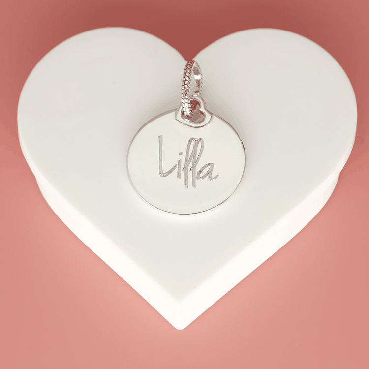 A következő képeken megmutatjuk, hogy mennyit számít a betűtípus és a szimbólum elhelyezése. Az egyik képen díszes, a másikon letisztult betűtípussal gravírozott Pandora medál látható ugyanazzal a szöveggel; a különbség azonnal érzékelhető olvashatóságban és összhatásban. Ugyanígy bemutatjuk a „szöveg felül – szimbólum alul” elrendezést a fordított változattal összevetve: utóbbinál a szimbólum gyakran aránytalanul kicsi. Arra bíztatunk, hogy a tervezőben próbálj ki több variációt (rövidebb vs. hosszabb felirat, nagybetűs vagy vegyes írásmód, egyszerű szimbólum a szöveg alá komponálva)!