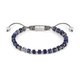 Az Instinctstyle állítható férfi karkötő szodalittal hétköznapi és alkalmi viseletre egyaránt tökéletes. A karkötő alapja textil, melyen szintetikus szodalit gyöngyök és nemesacél karikák váltják egymást. Mérete csúszózárral állítható 15 és 21 cm között.