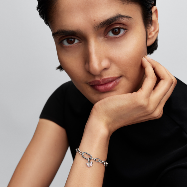 A természet szépségét és a képzelet kertjeit idézi ez a különleges charm, miközben az átalakulást és a szabadság érzését szimbolizálja. A ME rózsaszín pillangó ezüst charm finoman kidolgozott, részletgazdag motívuma elegánsan ötvözi a természet ihlette formavilágot a könnyedség és a változás üzenetével. Ez a darab arra emlékeztet, hogy minden átalakulás lehetőséget hoz a szabad önkifejezésre.