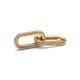 Pandora ME styling pávé shine dupla láncszem, sterling ezüstből, 14k arany bevonattal, csillogó cirkóniakövekkel. A láncszemet akaszt a csatlakozók közé, vagy tedd fel a fülbevalódra, hogy egy igazán vagány megjelenést hozz létre.