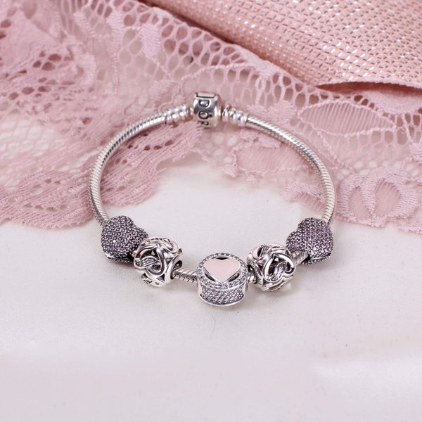 Termék leírás - Pandora ékszer Pandora rózsaszín szíves karkötő szett
