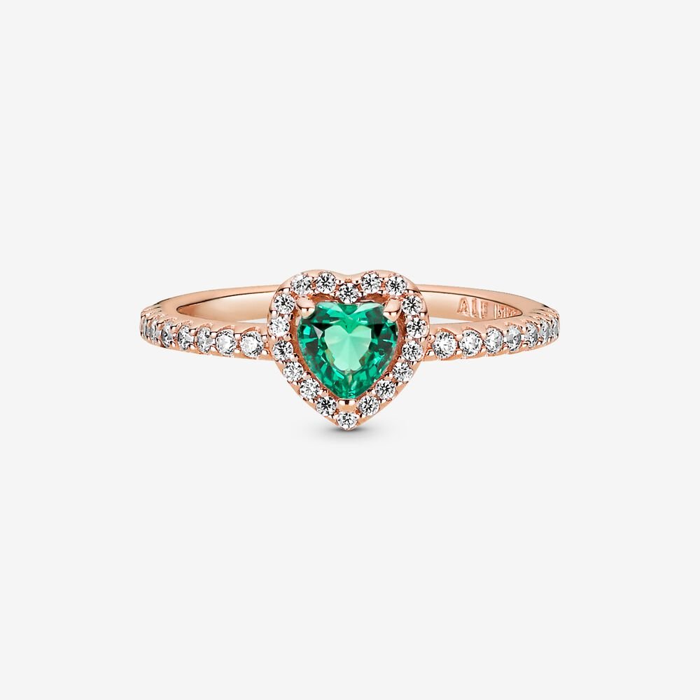 Termék leírás - Pandora ékszer Szikrázó kiemelt szív rozé gyűrű zöld kristállyal