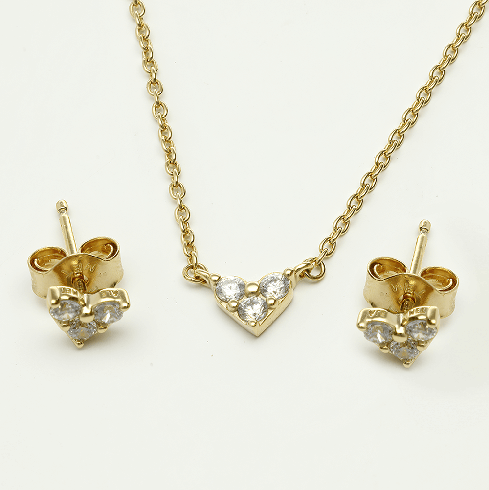 A Tripla köves szív shine ékszer szett tartalma egy Pandora fülbevaló (Tripla köves szív shine fülbevaló - 263003C01) és egy Pandora nyaklanc (Tripla köves szív shine nyaklánc - 363014C01-45)