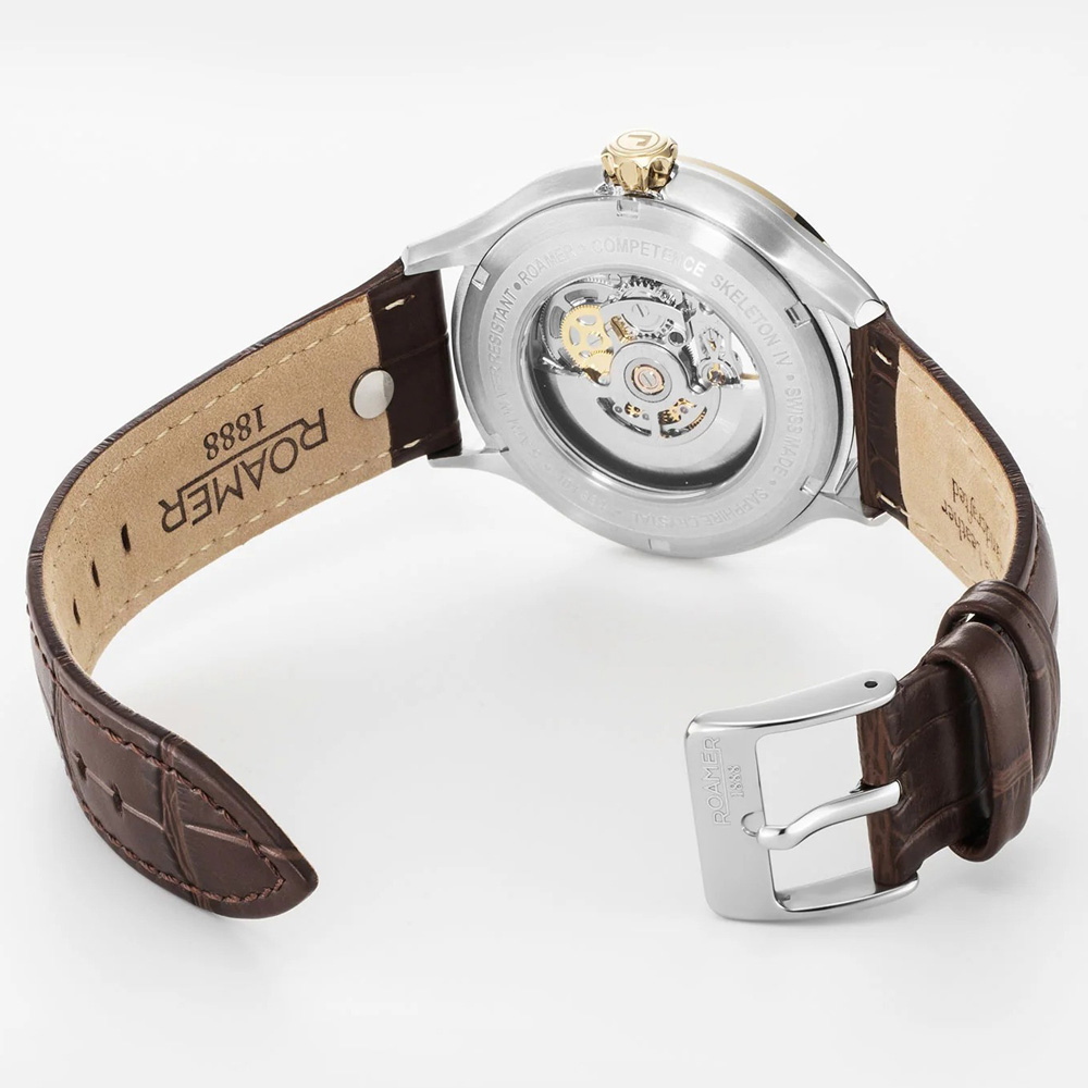 Termék leírás - Roamer Competence Skeleton IV bicolor barna bőrszíjas automata karóra