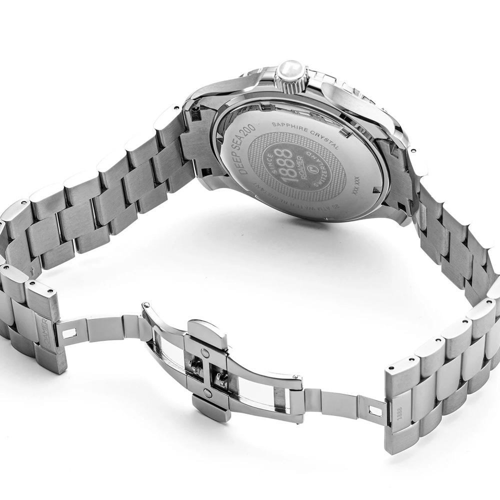 A Roamer DEEP SEA 200 szürke számlapos karóra 20ATM vízállóságát a masszív tok, a menetes hátlap és a koronazár garantálja, úszáshoz, fürdéshez, vízi sportokhoz, de akár még könnyűbúvárkodáshoz is bátran használhatjuk. Az óra számlapja, számlapjának struktúrája, a dekoratív guilloché hullámminta a tenger hullámait tükrözi, a 120 klikkes búvárlünetta szintén a búvárórák sajátossága.