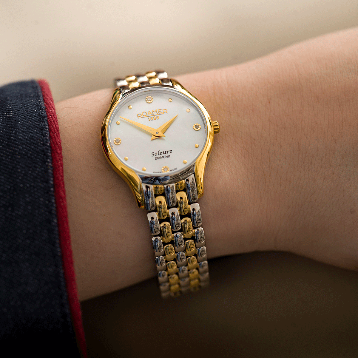 Termék leírás - Roamer Soleure Diamond gyöngyház számlapos bicolor női óra