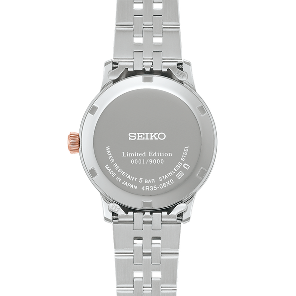 A Seiko Presage Cocktail Time Sakura Aviation női karóra meghatározott, limitált csak! 9,000 db példányszámban kerül a piacra, így csak korlátozottan érhető le! A Limited Edition jelzés és az óra limitáción belüli sorszáma - 0000X/10000 formátumban - az óra hátlapjára van gravírozva.