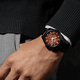 A számlapon és a szíj alsó oldalán a hagyományos japán „Kakiiro” szín látható, amely egy gazdag skarlátbarna tónus, a kabuki mesterek által hagyományosan viselt jelmezek színe.