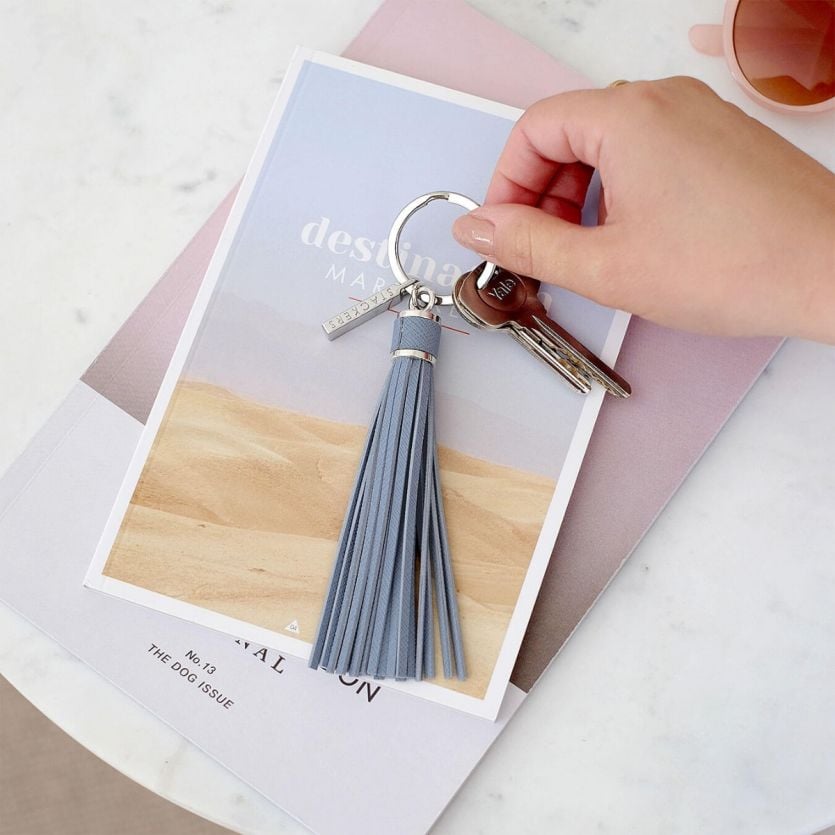 Ez a Stackers angolkék kulcstartó vegán bőrből készült és tökéletes kiegészítője lehet a táskádnak, kulcscsomódnak, vagy bármely kedvenc használati tárgyadnak.