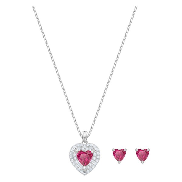 Légy eredeti ezen a Valentin-napon ezzel a romantikus ródiummal bevont Swarovski szettel. A láncra szerelt medál és a bedugós fülbevaló piros szív alakú kövekkel és tiszta kristálypavéval ragyognak. Bármilyen alkalomra könnyen hordható, élénk hűvösséget és nőiességet ad a megjelenésedhez. Tökéletes ajándék.