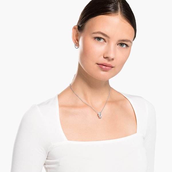 Ezt a gyönyörű Swarovski ékszerszettet az időtlen elegancia jellemzi, egy modern csavarral. Tartalma egy lenyűgöző formavilágú, két egymásba fonódó, ragyogó vonalat ábrázoló medál, melyet a fehér kövek csillogása és egy hozzáillő, delfinkapoccsal záródó lánc tesznek teljessé. A szett részét képezi egy hozzáillő pár bedugós fülbevaló is, melyen ugyanaz a csavarodó motívum köszön vissza, további fénylő fehér kövek társaságában, gondoskodva a testre szabott megjelenésről, mely tökéletes választás, ha stílusos, sugárzó jegyeket kívánsz kölcsönözni hétköznapi viseleteid számára.