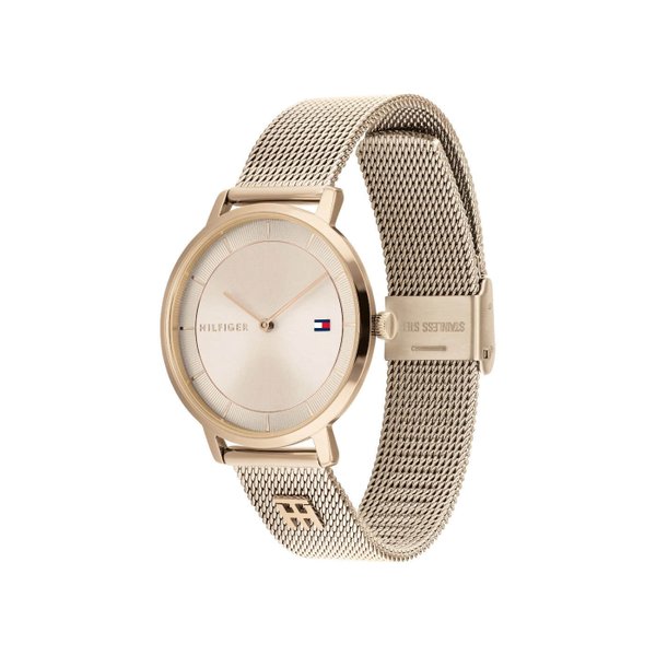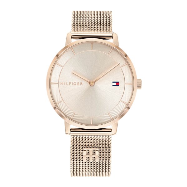 A Tommy Hilfiger Tea rozé női órát a finom, elegáns stílust kedvelőinek készítették.  Nemesacél tokozású, és a keményített, edzett kristályüvege kevésbé karcolódik, ezért sokáig csillogó marad. A szíj és a csat nemesacélból készült. Csúszkás csatközéppel a csat könnyen, tág határok között állítható. A cseppálló tokozás véd a fröccsenő víz ellen, de nem szabad fürdeni, úszni benne.